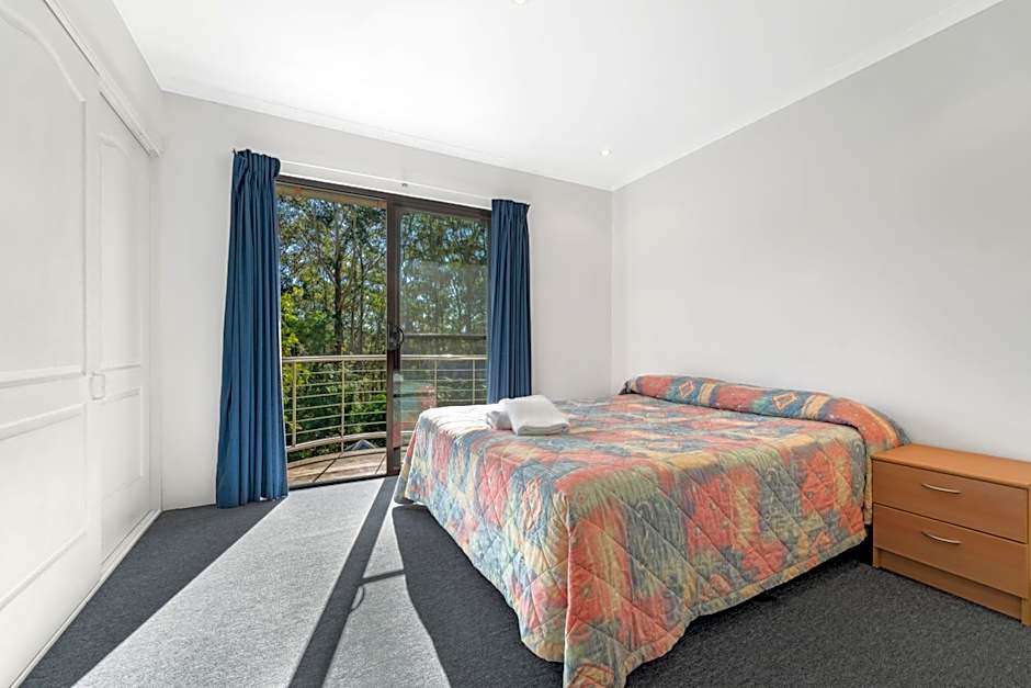 This townhouse style two story unit has a generous lounge, dining and kitchen area and toilet downstairs. Upstairs has two bedrooms, there is a queen master bedroom with built in wardrobe and the second bedroom contains two single beds. A generous size bathroom is also located upstairs with a washing machine and dryer.